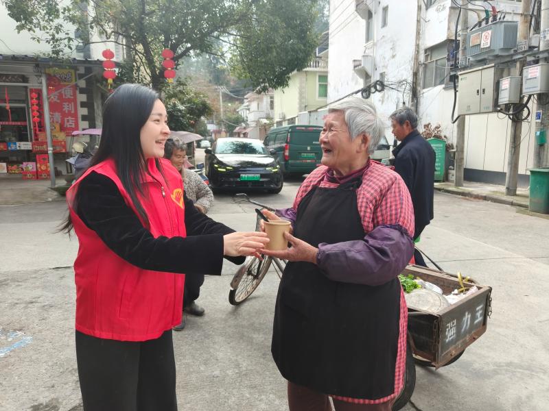随后,志愿者们走进社区,为独居老人和高龄老人送上热气腾腾的汤圆与节日祝福,与群众话家常、问冷暖。小小的汤圆,不仅温暖了春日的寒意,更拉近了与居民之间的情感距离。