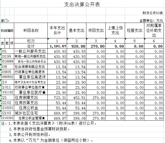 3.基本支出:指为保障机构正常运转、完成日常工作任务而发生的人员支出和公用支出。